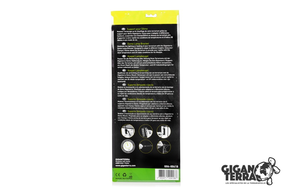 Dans un terrarium, chaque détail compte : la température, l’intensité lumineuse, l’exposition aux UVB… Tous ces paramètres dépendent de la distance entre la source et l’animal. Le Support pour Dome GiganTerra a été conçu pour répondre à cette exigence de précision. Il permet de positionner un dôme ou un clamp à la hauteur idéale, offrant ainsi une gestion fine de la chaleur et de la lumière, adaptée aux besoins spécifiques de chaque espèce hébergée.