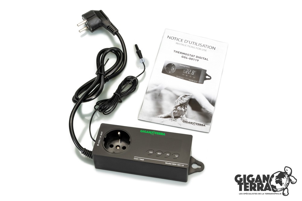 Maintenir une température constante dans un terrarium ou un aquarium n’est pas une option, mais une nécessité. Le Thermostat Digital GiganTerra répond à cette exigence en offrant une solution de régulation précise, continue et sécurisée. Pensé pour les reptiles, amphibiens et invertébrés, il permet de reproduire au plus juste les microclimats nécessaires à leurs fonctions vitales : digestion, thermorégulation, reproduction, ou simplement confort quotidien.