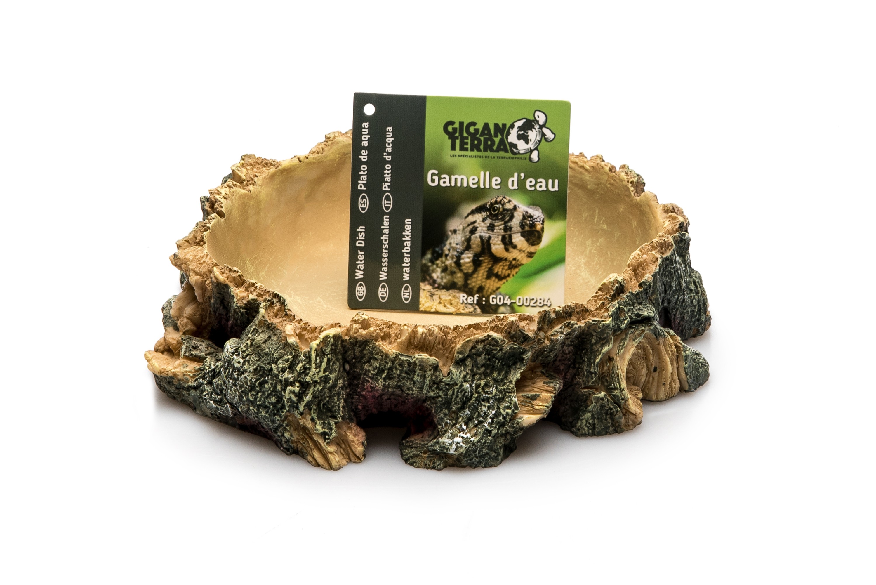 Avec son diamètre de 17 cm et sa finition naturelle, la Water Dish M GiganTerra constitue une solution d’hydratation fiable pour reptiles et amphibiens de petite à moyenne taille. Fabriquée en résine polyester non toxique, elle n’altère pas la qualité de l’eau et s’utilise aussi bien en terrarium qu’en paludarium. Sa forme inspirée de la roche lui permet de s’intégrer harmonieusement à tous les décors, tout en offrant une excellente stabilité. Facile à entretenir et résistante aux conditions extrêmes, cette gamelle d'eau sélectionnée par Dundee Shop garantit un point d’eau sain et sécurisé, essentiel au bien-être animal.