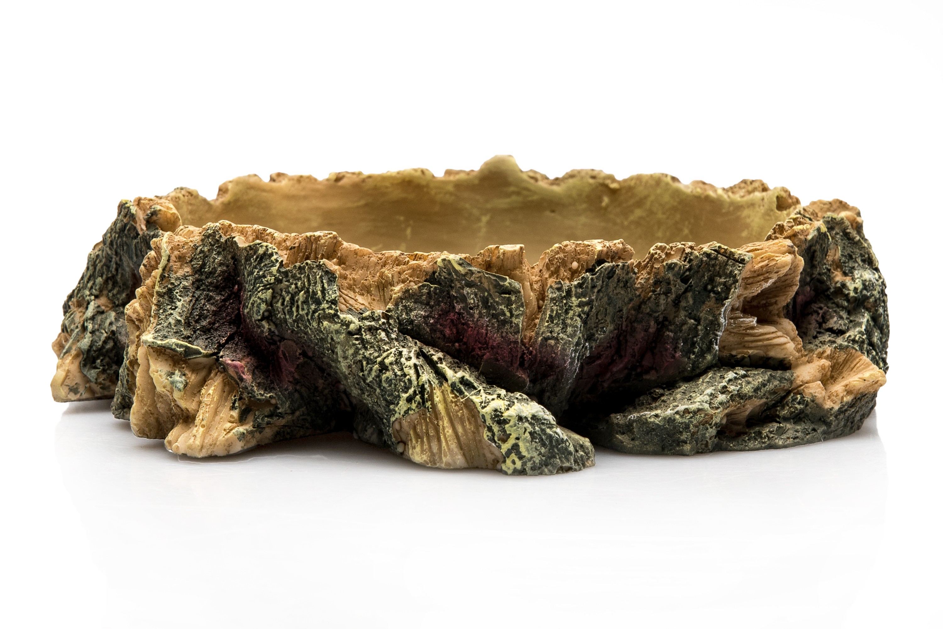La forme irrégulière et les textures minérales de la Water Dish M s’intègrent discrètement dans tous les décors. Que le terrarium soit tropical, tempéré ou désertique, cette gamelle renforce l’aspect naturel de l’environnement. Cette intégration visuelle est importante pour limiter le stress de certaines espèces qui privilégient des repères discrets et cohérents dans leur habitat.