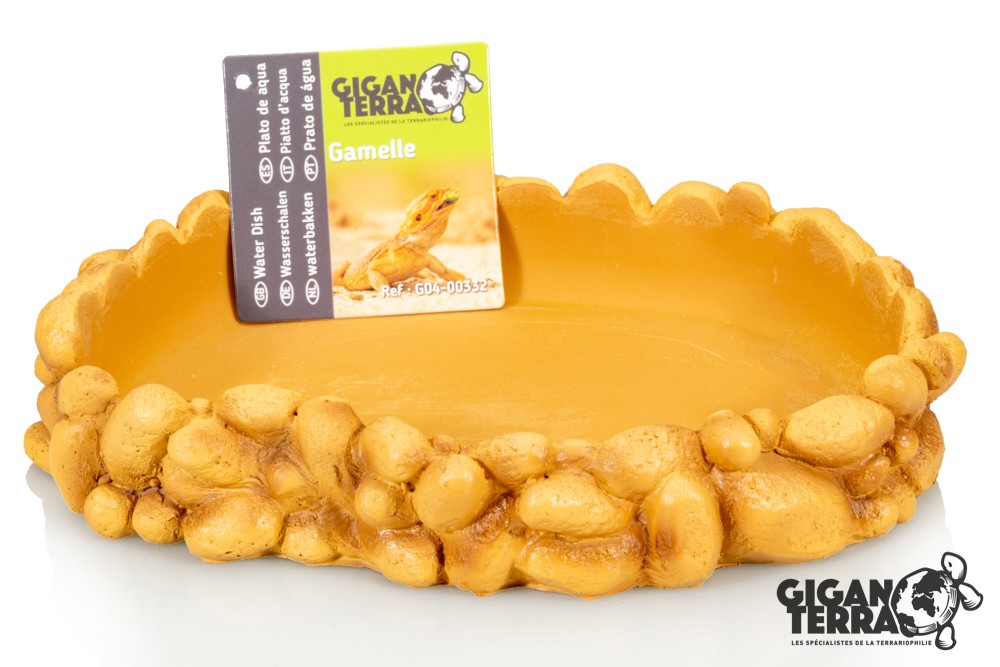 Fabriquée en résine polyester, la gamelle est pensée pour un usage terrariophile durable. Le matériau résiste bien aux variations d’humidité et aux températures courantes en terrarium, sans se déformer ni se fissurer facilement. Surtout, la résine est non toxique et neutre : elle ne modifie pas la qualité de l’eau, ce qui est essentiel pour une hydratation saine. Cette neutralité convient aussi lorsque la gamelle sert de récipient alimentaire, en évitant toute altération des insectes, des végétaux ou des préparations déposées à l’intérieur.