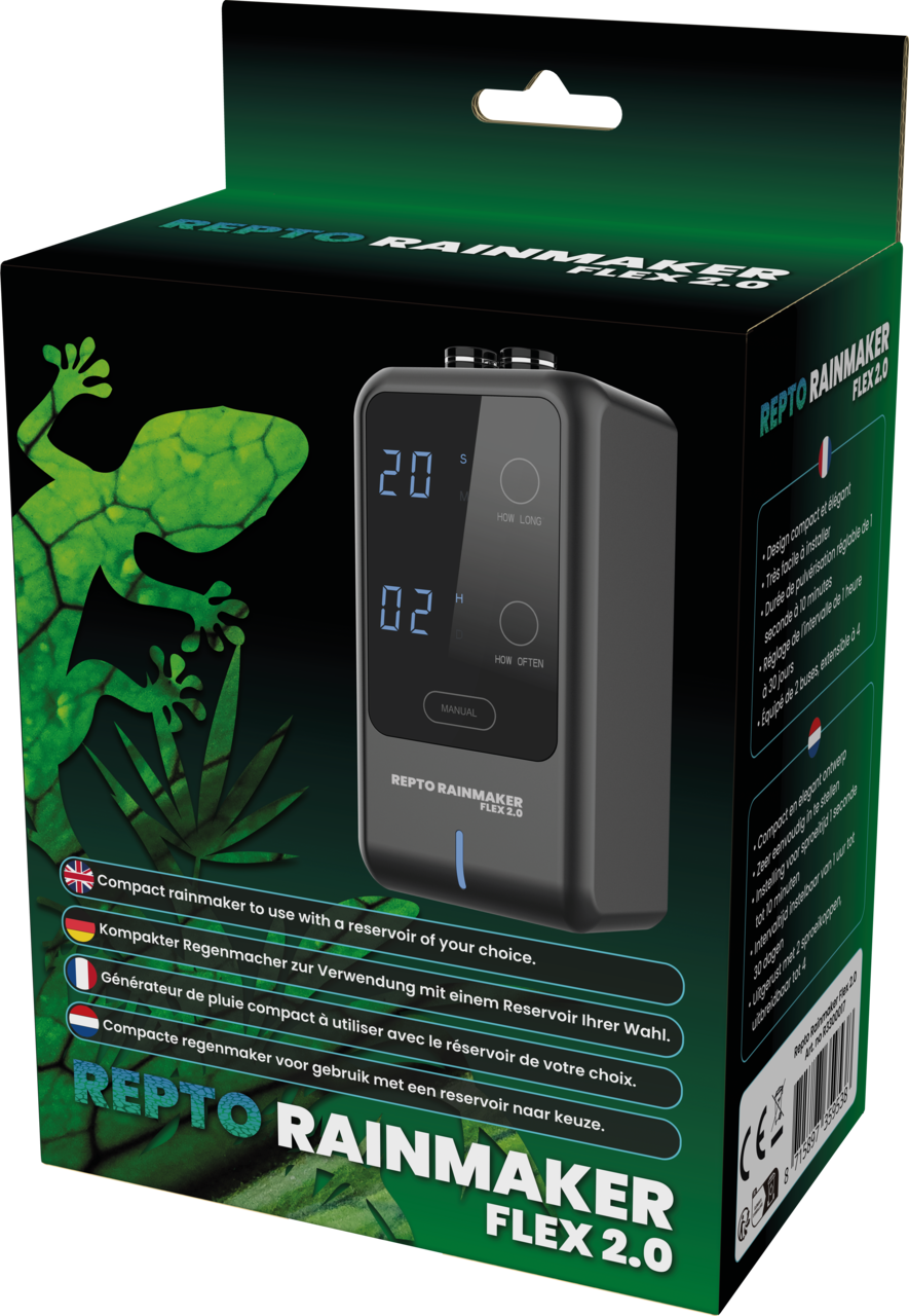 Parfait pour les terrariums tropicaux complexes, le brumisateur Repto Rainmaker Flex 2.0 offre une humidité maîtrisée grâce à ses tuyaux souples et buses orientables. Modulable, précis et silencieux, il diffuse une brume fine qui reproduit fidèlement le climat des forêts humides, tout en s’adaptant à chaque zone du décor. Ce système intelligent convient aux espèces les plus exigeantes comme les dendrobates, caméléons ou grenouilles arboricoles. Entièrement réglable et facile à installer, il garantit un taux d’humidité constant, pour un environnement sain, naturel et propice au bien-être des reptiles et plantes tropicales.