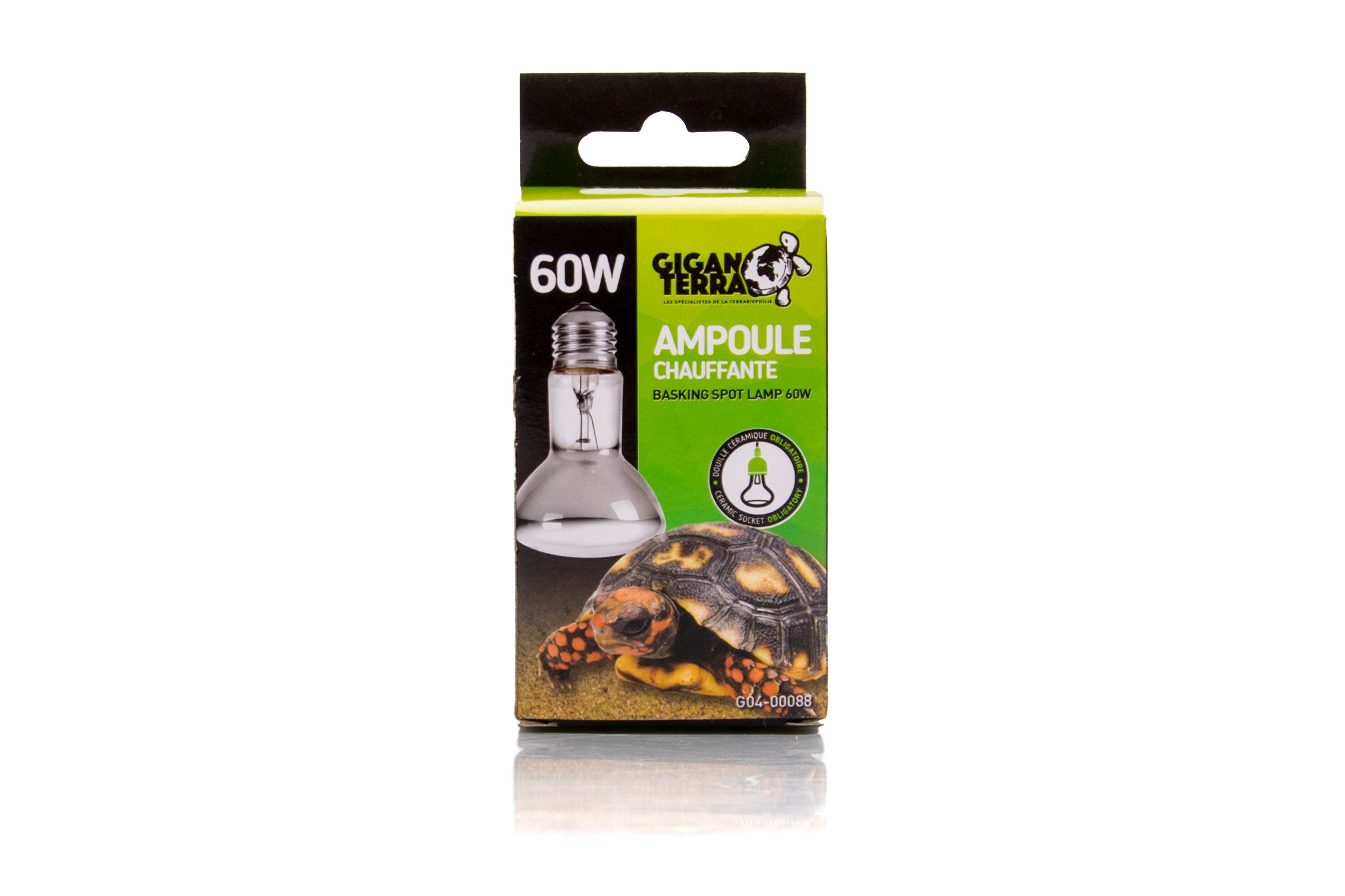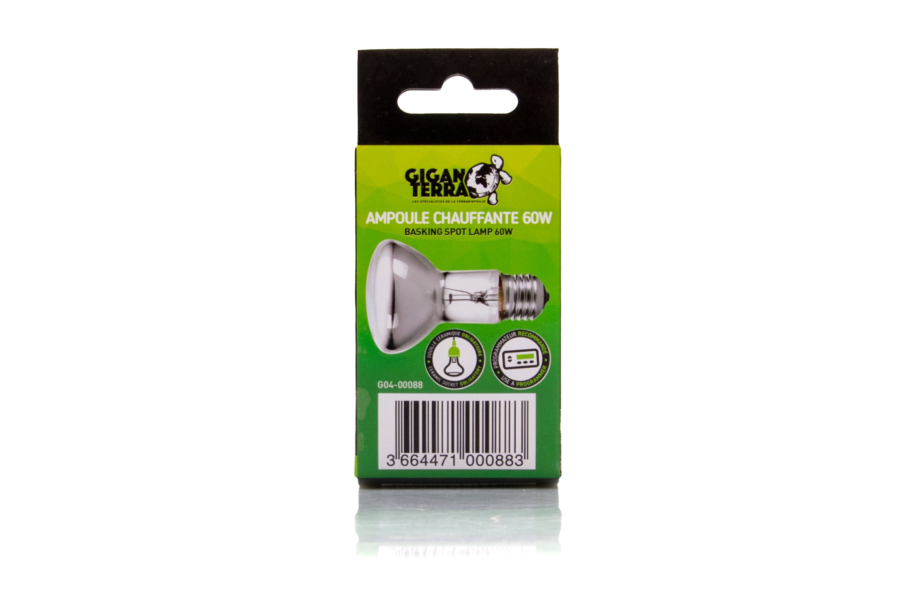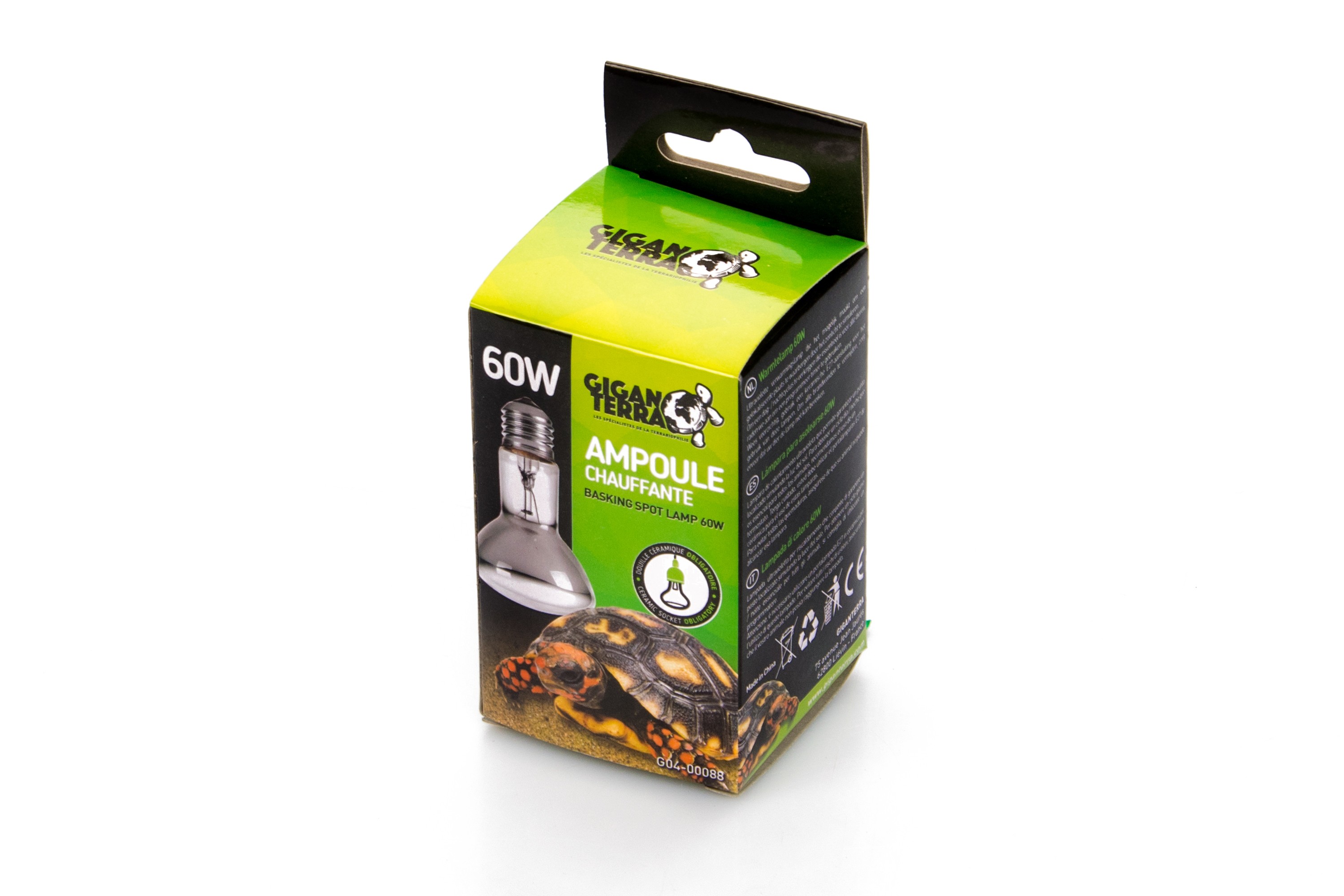 Dotée d’une douille E27 universelle, la Basking Spot GiganTerra 60 W s’installe facilement dans la plupart des supports et dômes chauffants. Mais cette puissance implique une vigilance accrue. Les espèces actives ou grimpeuses ne doivent jamais pouvoir accéder à l’ampoule. Un dôme profond ou une grille de sécurité est donc indispensable pour éviter les brûlures, même dans un grand terrarium. La hauteur de pose devra également être ajustée pour atteindre la température souhaitée, sans surchauffe.