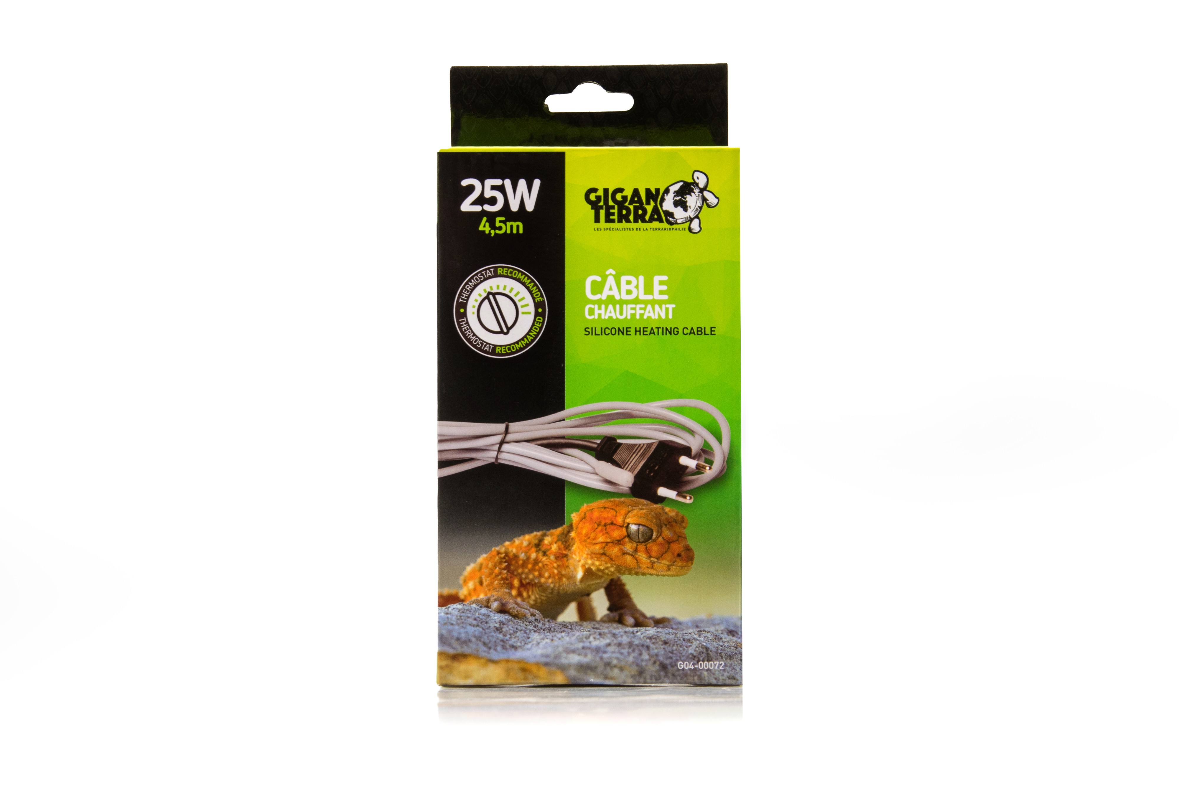 Le Câble Chauffant 25W GiganTerra – 4,5 m est une solution thermique parfaitement adaptée aux terrariums de taille moyenne, notamment ceux accueillant des reptiles nocturnes ou fouisseurs. Grâce à sa souplesse, sa puissance équilibrée et sa longueur généreuse, il permet une installation sur mesure, pensée pour accompagner les besoins thermiques spécifiques des animaux vivant au contact du sol. Ce système de chauffe favorise une chaleur progressive et localisée, sans créer de point chaud brutal ni déranger l’animal dans ses habitudes.