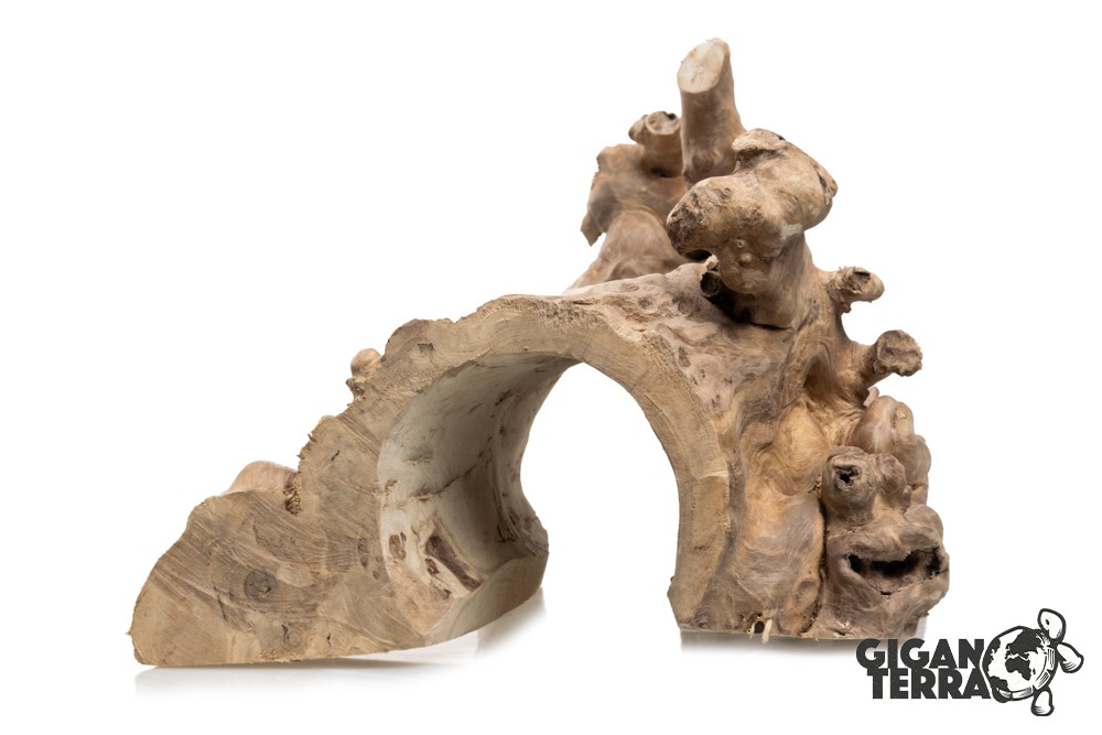 Le bois de Java est sélectionné ici dans sa forme la plus brute : non traité, non verni, sans produit chimique. Ce choix garantit une totale innocuité, même pour les espèces sensibles à leur environnement. Il présente également une résistance naturelle aux conditions extrêmes de la terrariophilie, comme l’humidité tropicale, la chaleur désertique ou les variations constantes des habitats tempérés. Sa stabilité dans le temps fait de cette grotte un investissement durable.