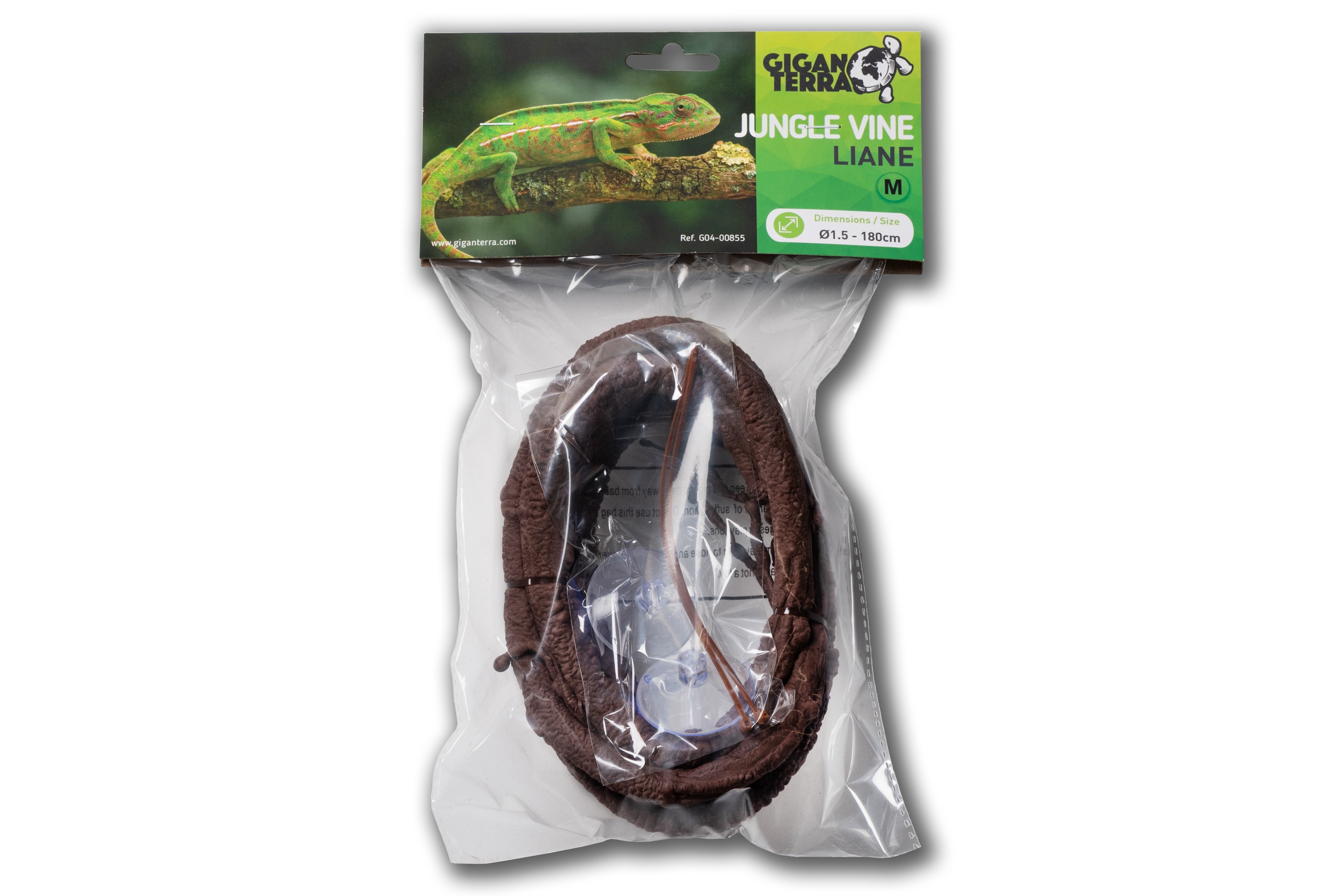 Plus épaisse et robuste, la Jungle Vine GiganTerra Ø 1,5 cm / 180 cm offre un support solide et naturel aux reptiles arboricoles de taille moyenne. Souple et entièrement modulable, elle se façonne à volonté pour structurer un décor tropical dense et stimulant. Sa texture rugueuse assure une excellente prise, favorisant l’escalade, le repos en hauteur et la circulation entre les différents niveaux du terrarium. Résistante à l’humidité et durable dans le temps, elle s’intègre parfaitement dans les habitats luxuriants où les comportements naturels peuvent s’exprimer pleinement.