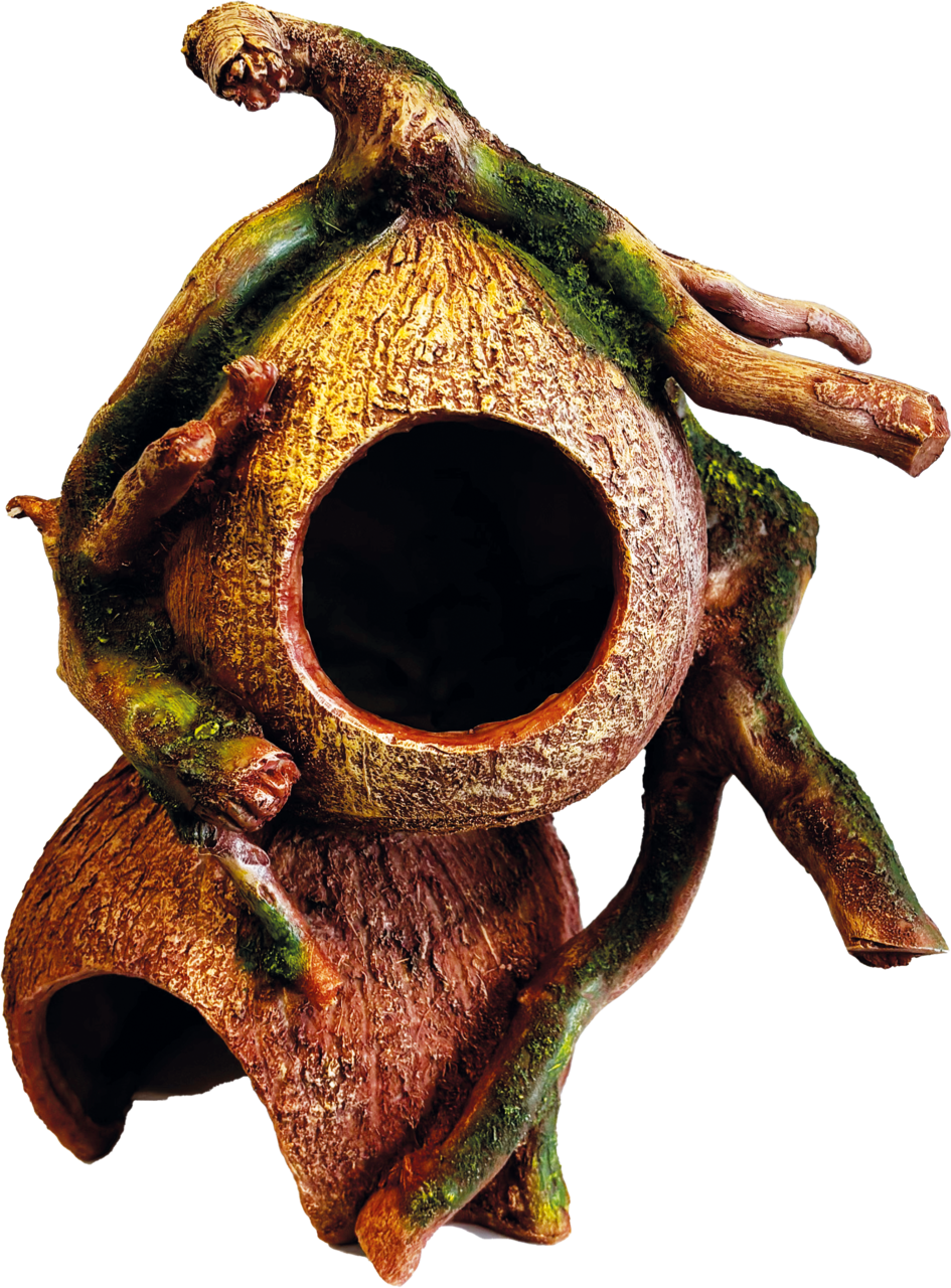 Fabriquée en résine synthétique, cette cachette combine l’aspect du végétal avec la robustesse du minéral. Contrairement à une véritable coque végétale, elle ne moisit pas, ne se fend pas et ne se déforme pas sous l’effet de l’humidité ou du temps. Le matériau non poreux empêche l’accumulation d’eau ou de bactéries, rendant le nettoyage rapide et efficace.