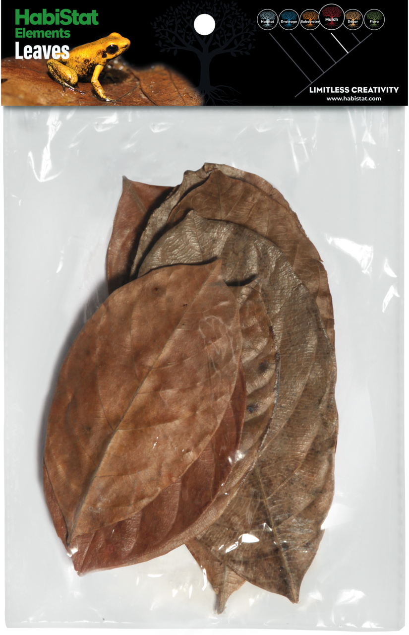 Chaque feuille, issue du jacquier, se distingue par sa texture épaisse et son coloris brun caramel profond. Disposées sur le fond du bac, elles créent un paysage forestier réaliste, contrastant harmonieusement avec les racines et les plantes aquatiques. En terrarium, leur aspect boisé s’intègre parfaitement dans les environnements tropicaux ou bioactifs, où elles servent de couverture protectrice et de source nutritive pour la microfaune. Cette combinaison esthétique et écologique confère à chaque installation une allure vivante et équilibrée.