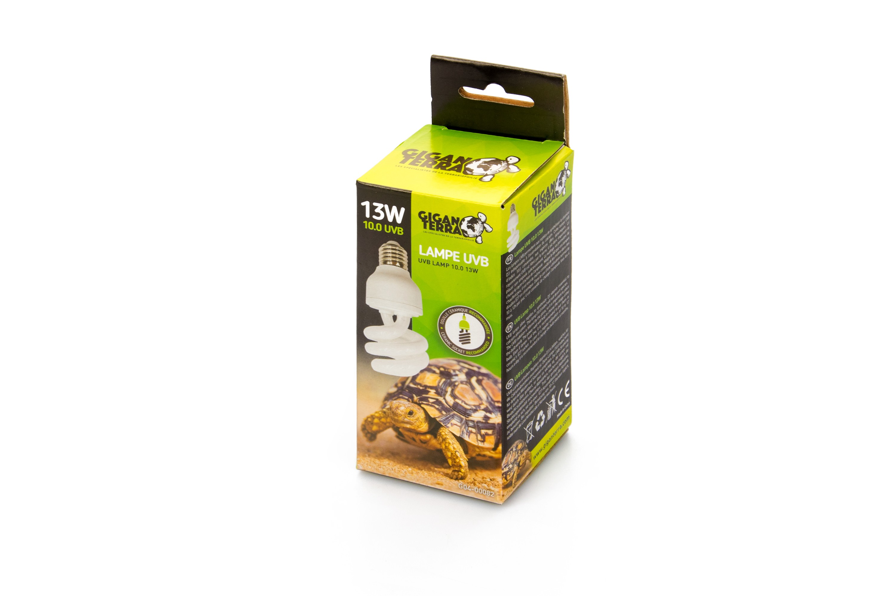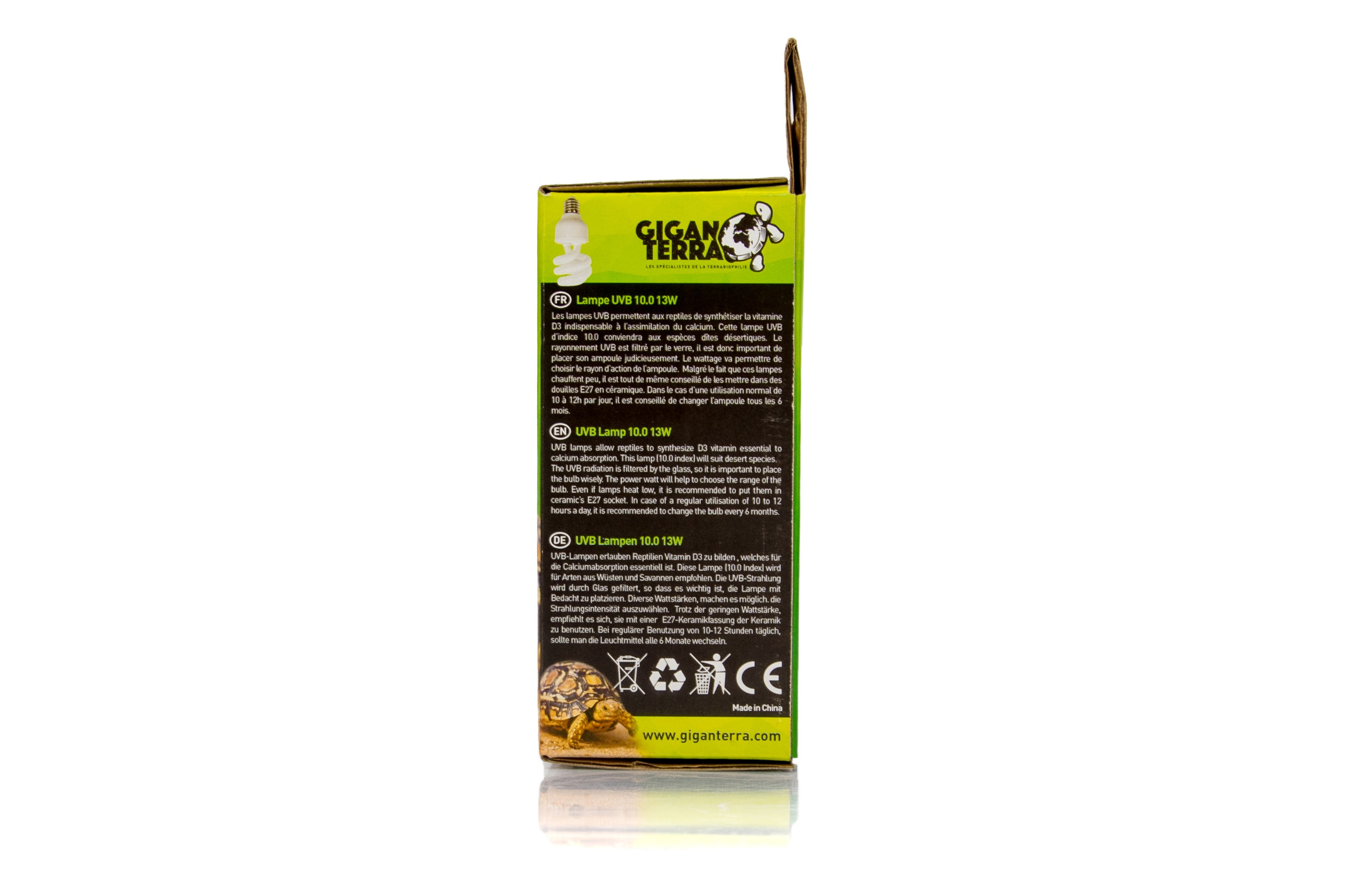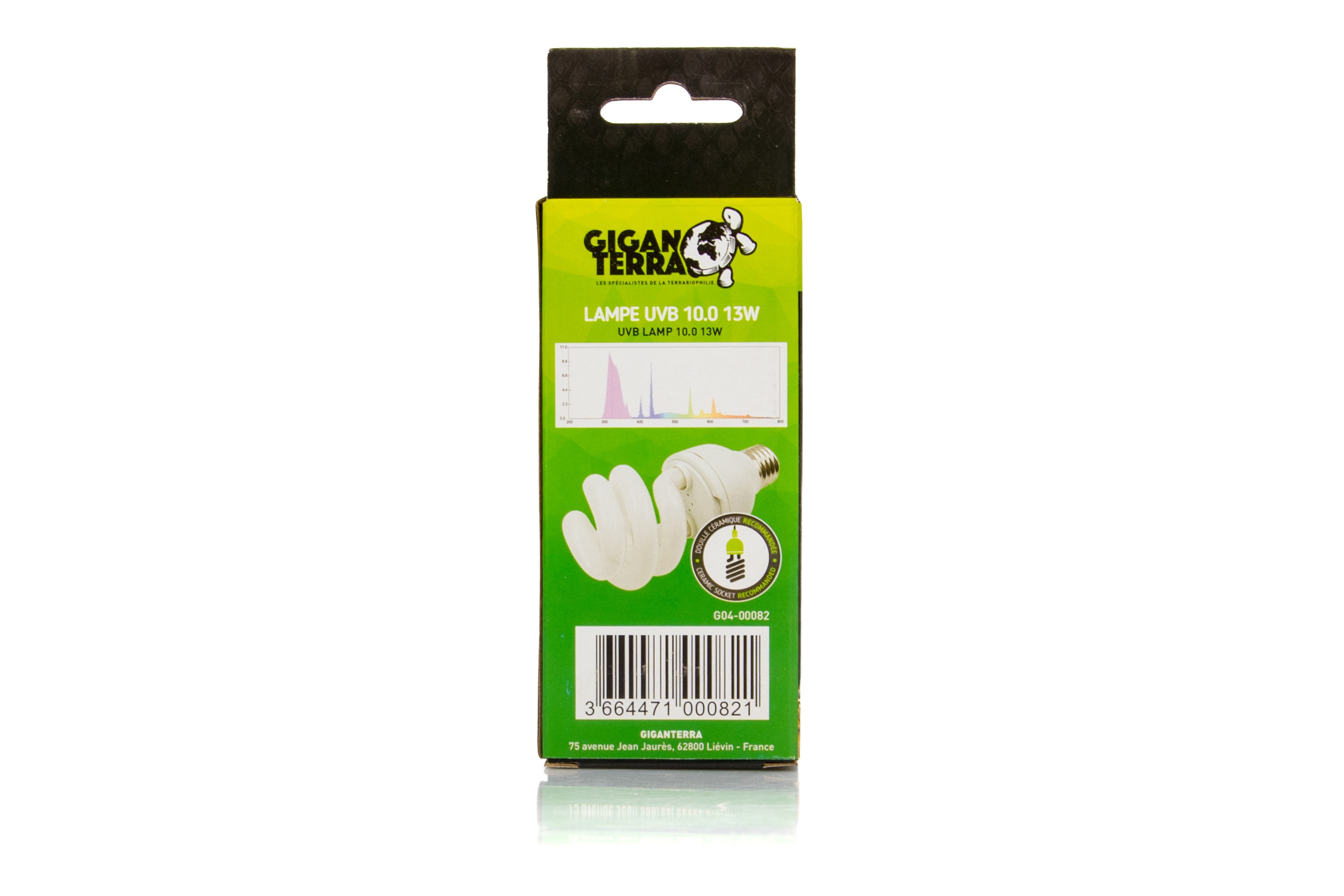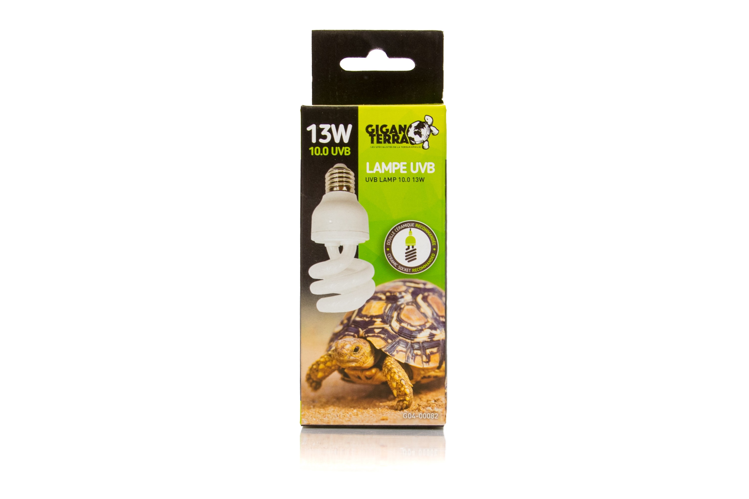 La lampe UVB GiganTerra 13W 10.0 fournit un rayonnement puissant, essentiel aux reptiles originaires d’environnements désertiques. Son indice UVB élevé (10.0) stimule la production de vitamine D3 et favorise l’absorption du calcium. Ce modèle est adapté aux terrariums de petite à moyenne taille, où une lumière intense est nécessaire. Pour garantir son efficacité, l’ampoule doit être installée sans vitre entre elle et l’animal. Utilisée 10 à 12 heures par jour, elle doit être remplacée environ tous les six mois. Dundee Shop la recommande pour sa constance et sa fiabilité dans les habitats fortement ensoleillés.