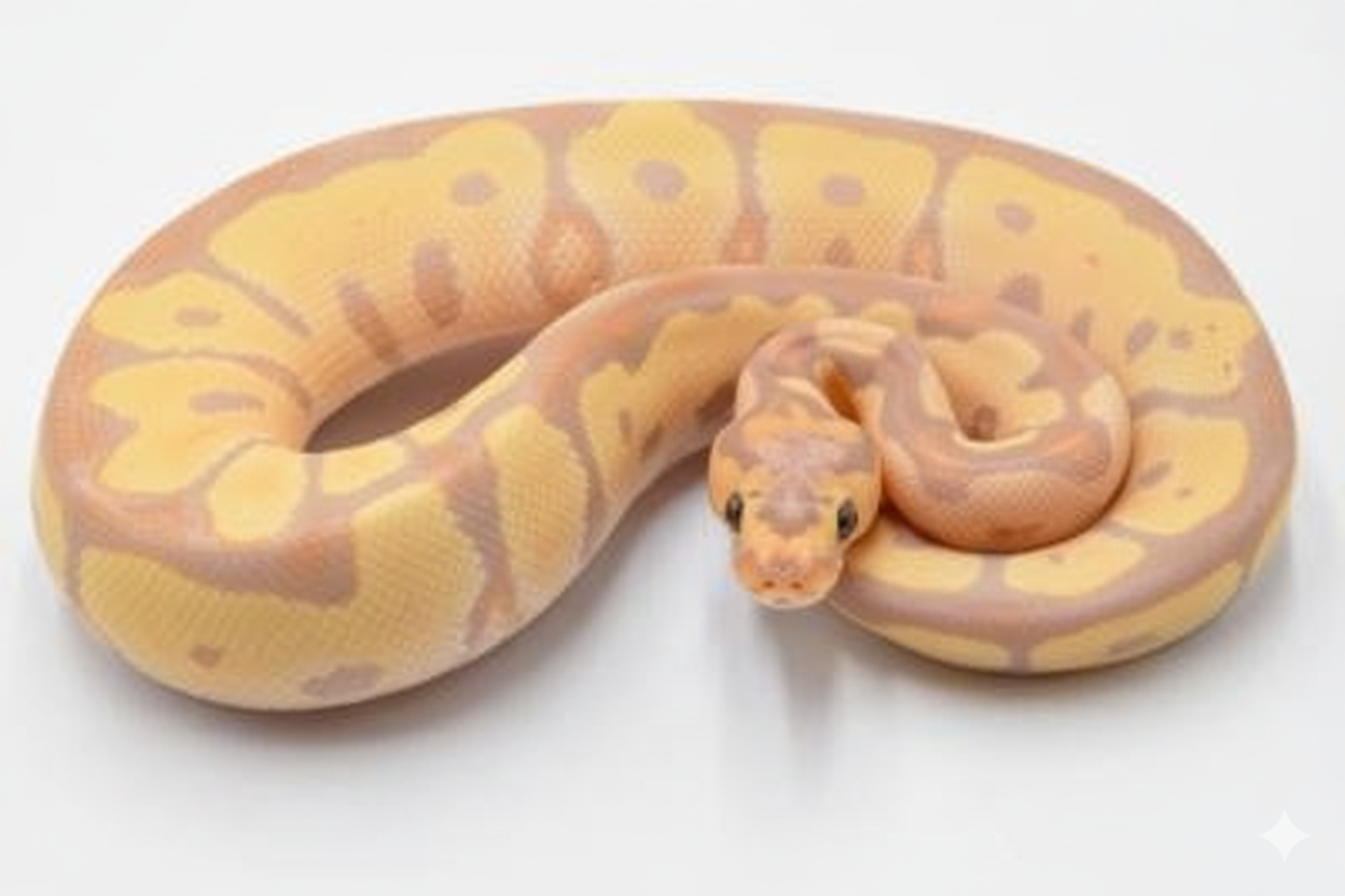 Le Python Royal Banana Clown fait partie de ces serpents qu’on identifie au premier coup d’œil. Sa robe combine une luminosité chaleureuse et un motif très dessiné, avec une impression de propreté visuelle qui plaît autant aux passionnés de génétique qu’aux amateurs d’esthétique. Dans un terrarium bien agencé, il devient une pièce maîtresse discrète, jamais criarde, mais toujours captivante.