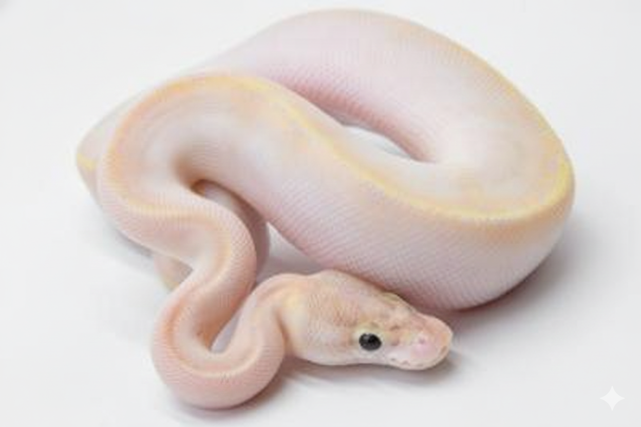 L’Ivory a ce pouvoir rare de capter l’attention sans multiplier les contrastes. On le reconnaît à son aspect clair et homogène, fruit de l’expression super du gène Yellow Belly. Là où beaucoup de pythons royaux racontent leur histoire par des taches et des rosettes, l’Ivory privilégie une lecture plus lisse, presque contemporaine, qui met en avant la forme du corps et la qualité des écailles. Sous une lumière douce, sa robe prend des reflets crème, vanille, parfois légèrement nacrés, et l’on remarque souvent de petites nuances sur la tête ou le long du dos qui donnent du relief sans rompre l’équilibre. Cette sobriété plaît autant à l’observateur patient qu’à l’éleveur qui cherche une base génétique claire et prévisible.