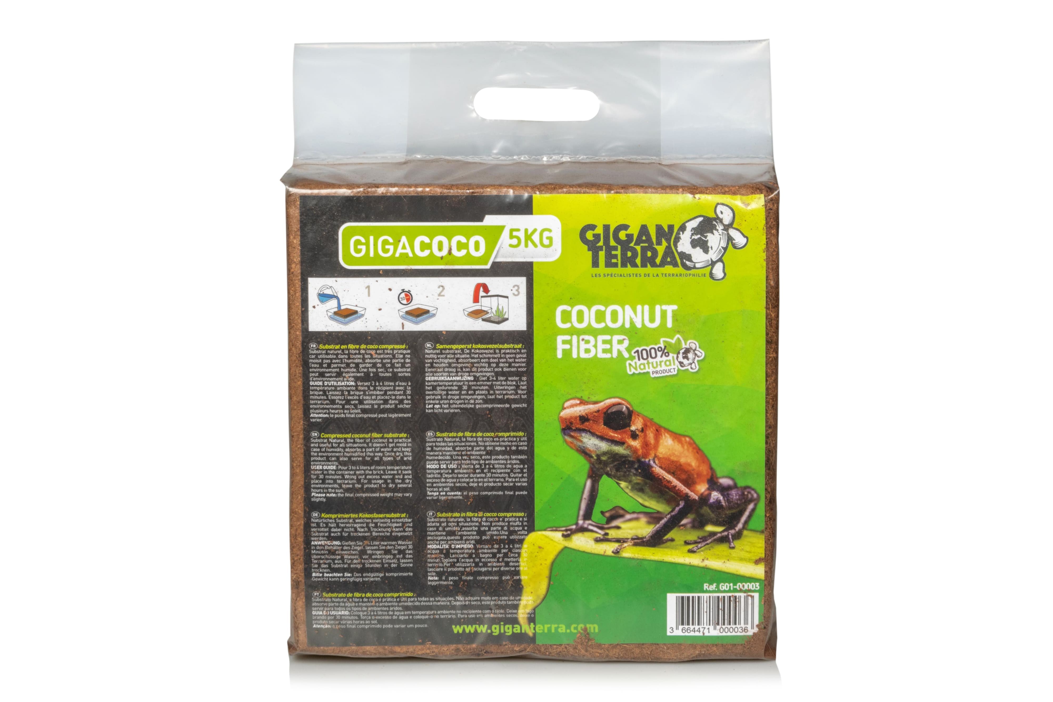 Le Coco Bricks GiganTerra 5 kg – Fibres de Coco Compressées est un substrat naturel de grande capacité, conçu pour répondre aux besoins des terrariums tropicaux, humides ou bioactifs. Ce bloc compact se transforme, après réhydratation, en un volume généreux de fibres de coco souples, propres et parfaitement aérées. Ce matériau permet de maintenir une humidité constante dans l’habitat tout en assurant une excellente circulation de l’air dans le sol, ce qui est essentiel pour le bien-être des animaux et des plantes.